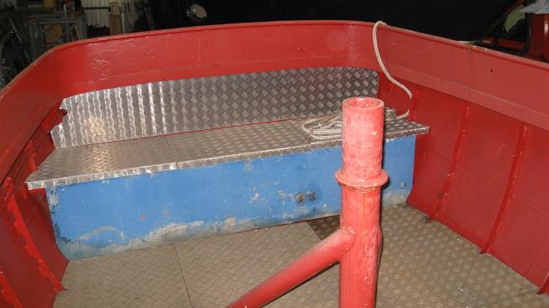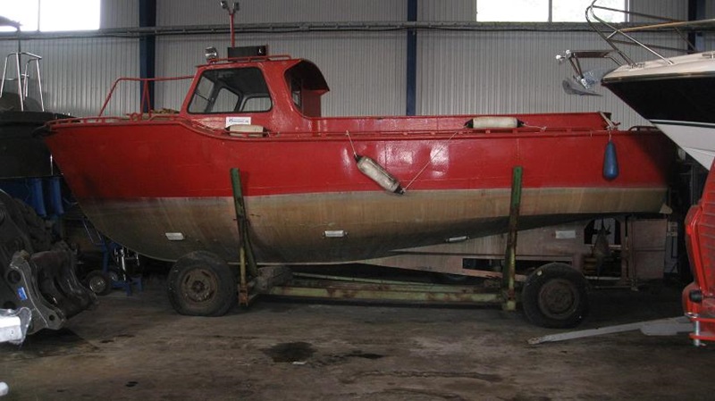 Den här båten köptes av Hamntjänst AB i Stenungsund, direkt från Lidwalls i slutet av 60-talet. Motorn, en MD 50, är originalmotorn. Som du ser finns tillverkningsskylten kvar, vilket bör underlättar din identifiering. Båten används i verksamheten men ligger fn på land som reserv, men är i övrigt helt klar för sjösättning.