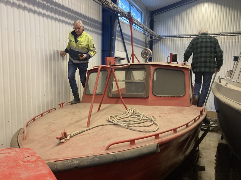 Dammig men i bästa skick. Lennart förevisar en av Stenungsunds Hamntjänsts Lidwallsbåtar. Foto Red 2024 04 09
