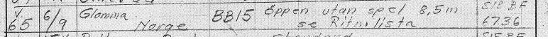 Utdrag från leveranslistan i Lidwalls Arkiv avseende nr 65 typ, BB 15