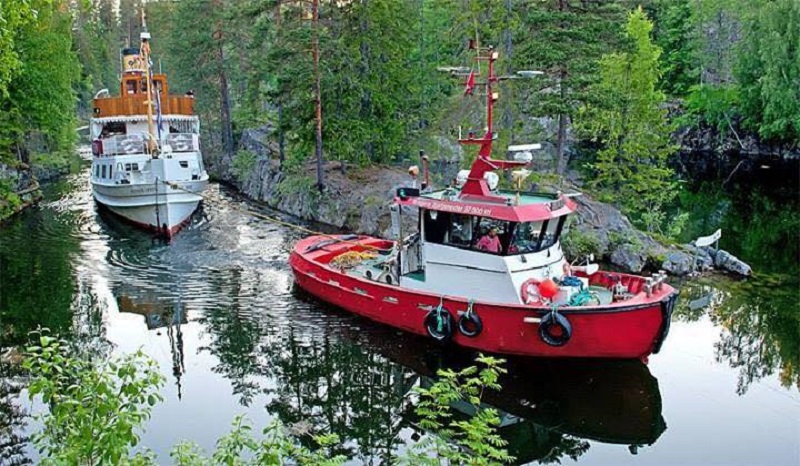 Evis bogserar Henrik Ibsen i Telemarkskanalen, Kvinnherads kommun. Hordalandsfylke. Två svenskbyggda båtar på denna bild. Tack för en fin bild !! Foto Mats Sivertsen 2016 06 23
