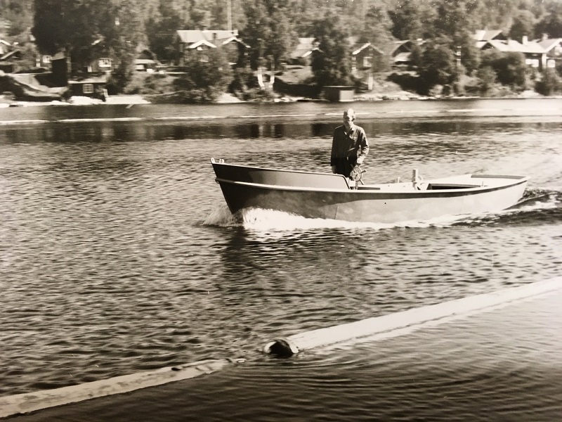 Provkörning i älven Foto i Leksands lokalhistoriska arkiv augusti 1970