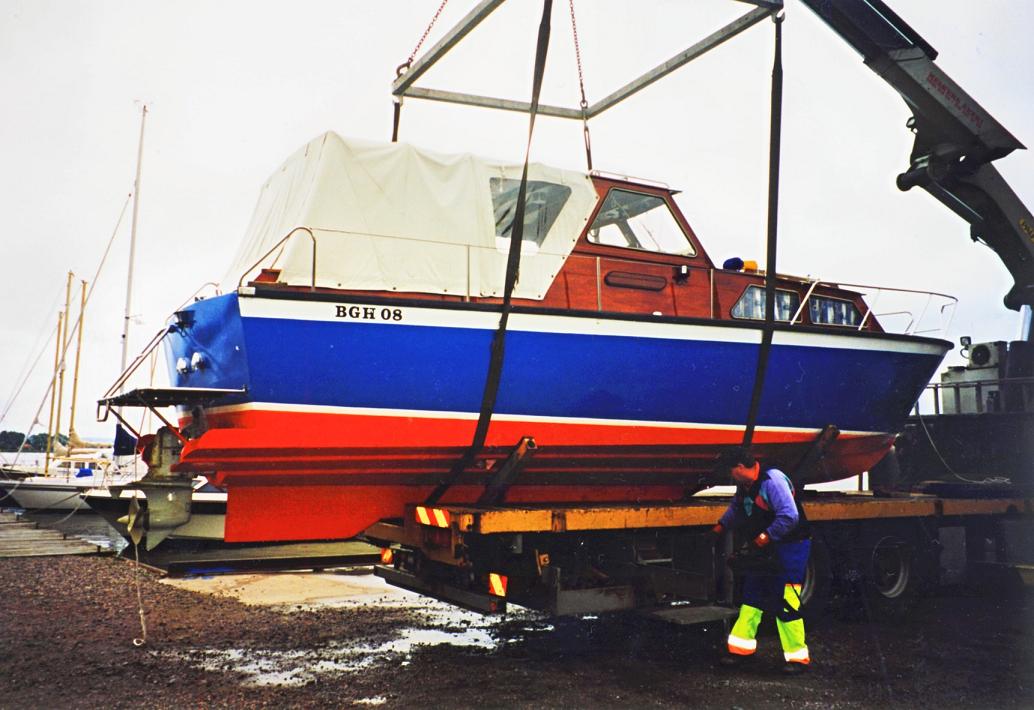 Thomas WidlundEftersom denna Ferrina är byggd och beställd som enbart ett skrov och båten ovan har träöverbyggnad tror vi att det just är denna båt ni kan se på bilden. Den är registrerad i båtregistret som BGH 08. Vi väntar nu på svar från riksarkivet där uppgift finns vem som ägde båten mellan år 1980- 1990 och det hoppas vi skall reda ut denna fråga.