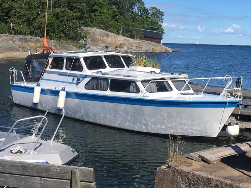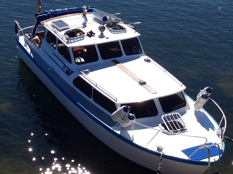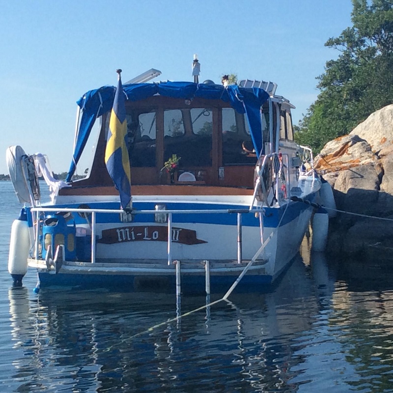 Båten heter Mi-Lo II, men vi kallar henne Stålis. Hon är rymlig och fin inuti. Byggd för två, så det är gott om plats med alla bekvämligheter man behöver. Hon har mycket trädetaljer och en stor skjutdörr in till hytten.Vi sjösätter tidigt i April och brukar ta sista övernattningsturen i naturhamn månadsskiftet oktober/november. Mycket användbar sommarstuga! Kanske någon känner igen henne och vet mer, vore roligt!