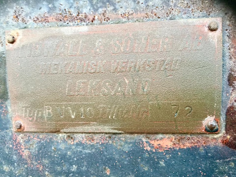 Tillverkningsskylten på sin plats sedan 1950. Foto Jonas Bergström i nov 2016
