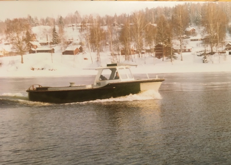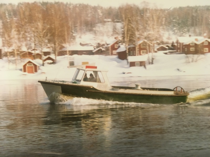 Provkörning i älven, Stävtutan saknas. Foto i Lidwalls samling Leksands Lokalhistoriska arkiv feb 1977