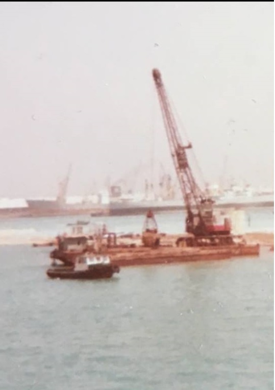 I Jedda 1978 på ett hamnbygge i Skanskas regi. Kan även vara systerbåten MB 39 . Foto genom Magnus Larsson far som var pråmskeppare där 1978