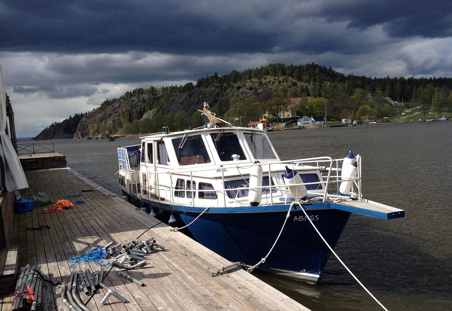 Hej! Tänkte uppdatera Er och övriga läsare på hur "Agnes" ser ut idag. Vi har jobbat sedan tidiga våren, med det yttre och är tyvärr inte i skrivande stund helt färdiga än. Det är mycket som ska målas, och med det väder som varit detta år så har man inte hunnit med att måla mellan regnskurarna. Men vi fortsätter, för någon gång ska man väl bli klar? Hemmahamn: Stegeborg, Söderköping