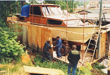 Här nedan följer några bilder red. fått av ägaren då täckelsen föll och båten sjösattes.