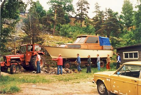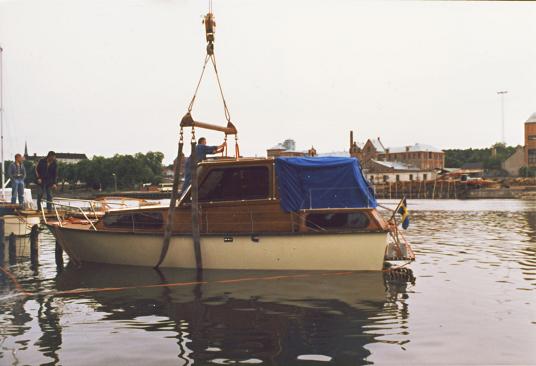 Charonne just sjösatt för första gången i Mälarhamnen Södertälje foto Kalle Buhs 1982