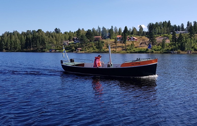 På väg till Nätrans första Lidwallsbåtens dag. Här utanför Hjortnäsheden på Österviken.