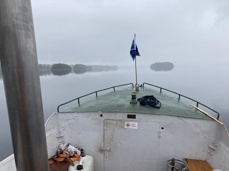 Efter en runda med räddarna vändes stäven mot Laknäs. Foto Erik Winter 2021 07 21