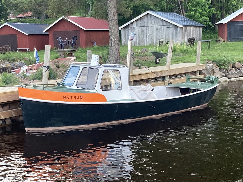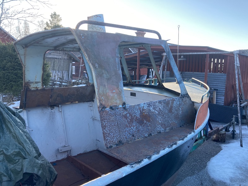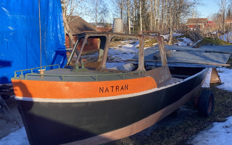 Återvinning är ordet för dagen. Hela Nätran är ju återvunnen så varför inte försöka återanvända en liten överbyggnad ? 2013 förvärvade redationen en annan BVV 10 båt nr 252 Djupvik som vi byggde om. Kvar blev ett elegant utfört doghouse som vi inte nämdes återvinna utan det sparades. Nätran hade haft någon form av hytt- det syntes tydligt på alla bortkapade plåtskarvar. Foto red 2022 03 04