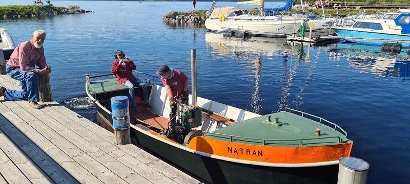En hel del fel visade sig när allt kom i praktisk drift men det löste sig med hjälp av Wintervarvets reservdelsförråd och Seffleerfarenhet. En vecka efter sjösättningen var allt åtgärdat och båten försedd med gös för Lidwallsvimpel, Tryck på bilden och åk med ett stycke då den 71 åriga Sefflemotorn går 595 v/m vilket gav en loggad fart av 4,6 knop, Lite barlastning återstod. Foto Red 2021 07 27