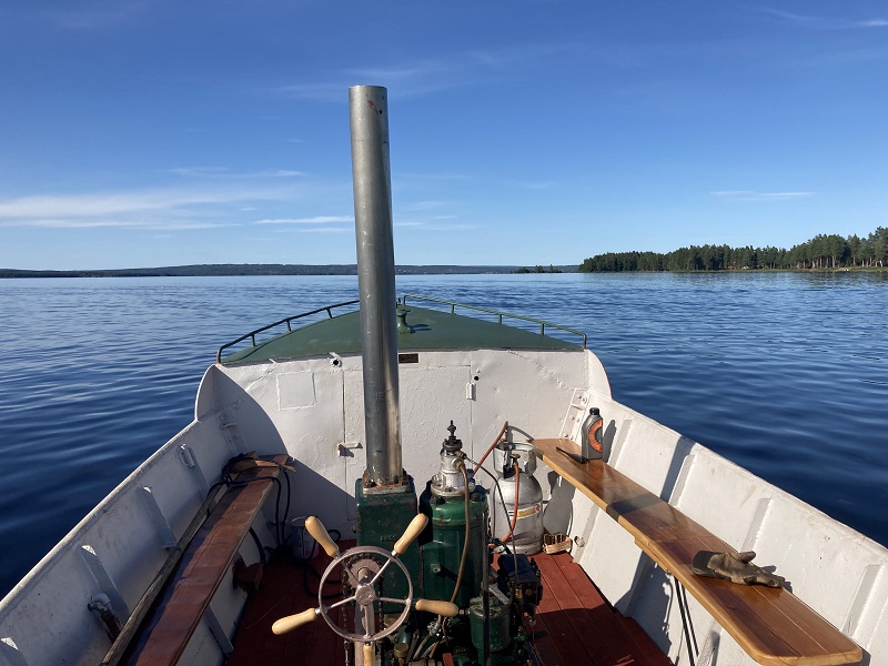 Sjösatt i Tällberg och på väg mot hemmahamnen. Spännande med nya hytten Allt förlöpte väl. Foto Red 2022 06 15